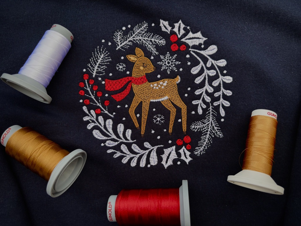 Koloušek možná vypadá roztomile, ale tahle mikina to s pohodlím myslí vážně! Tmavě modrá jako zimní obloha, výšivka jemná jako sněhová vločka a materiál, který vás nezradí. Ideální společník na vánoční maraton pohádek i cestu pro svařák!