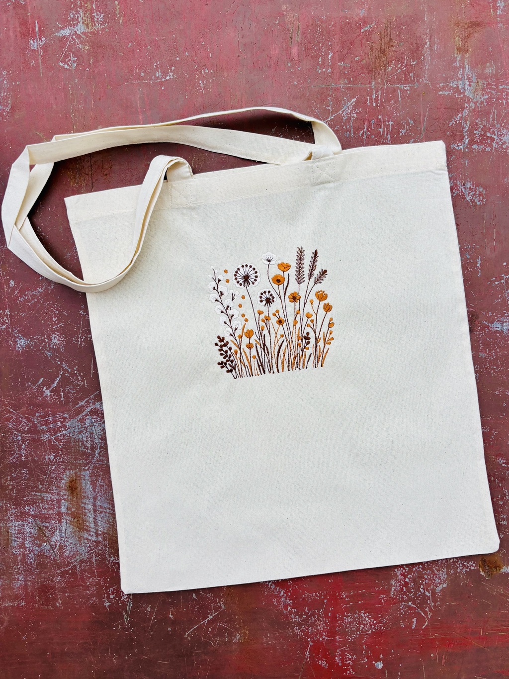 Plátěná taška s výšivkou lučního kvítí přírodní